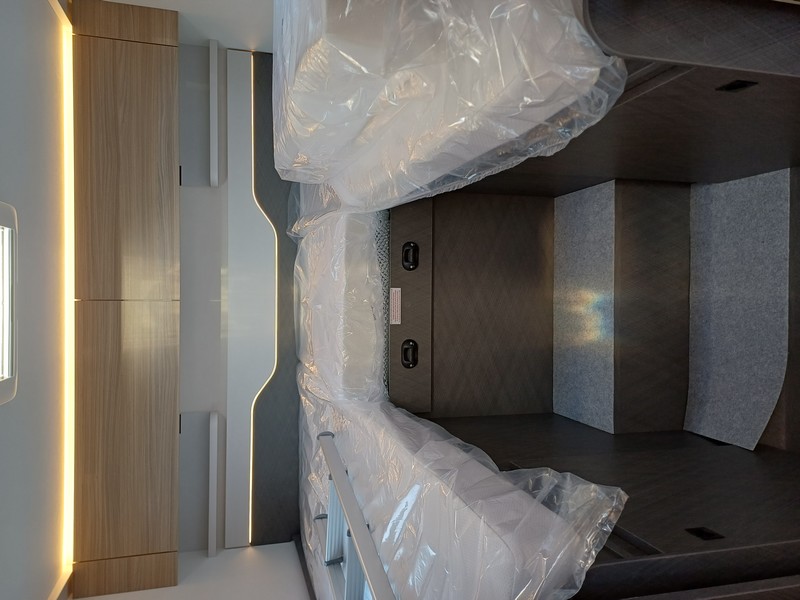 Chambre avec lits jumeaux transformables en lit XL + lit de pavillon sur cabine de conduite. matelas haute qualité.
